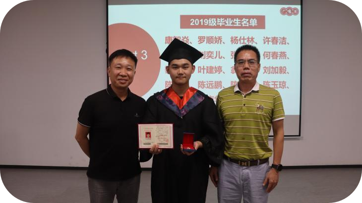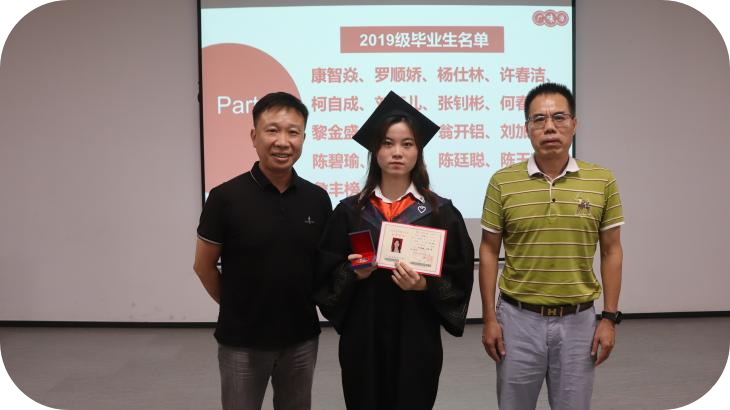 許總經(jīng)理、林主任為2019級(jí)畢業(yè)生代表頒發(fā)畢業(yè)證書(shū)及勛章