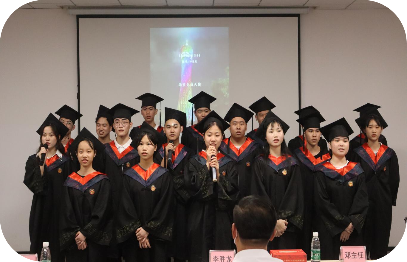 19級(jí)全體畢業(yè)生用精心策劃的畢業(yè)歌聲唱響了畢業(yè)的主旋律,歌聲干凈、舞步輕盈。他們用自己創(chuàng)作的歌詞和真情的演繹,告別青澀歲月,迎接陽(yáng)光快樂(lè)、激情奮進(jìn)的新征程。兩段實(shí)習(xí)記錄視頻的播放,回顧了同學(xué)們?cè)趶V味源實(shí)習(xí)一年里的點(diǎn)點(diǎn)滴滴:初次見(jiàn)面的地方、廣味源第一課、冬至一起包的餃子、趣味運(yùn)動(dòng)會(huì)上的狂歡、元霄節(jié)一起搓的湯圓、一起揮曬汗水的籃球場(chǎng)、一起上臺(tái)拿的獎(jiǎng)、大專班領(lǐng)書(shū)現(xiàn)場(chǎng)、20級(jí)師妹的畢業(yè)祝福和漫畫(huà)像……如詩(shī)的歲月在廣味源沉淀、升華、綻放!每一個(gè)鏡頭都讓人留戀和感動(dòng)!