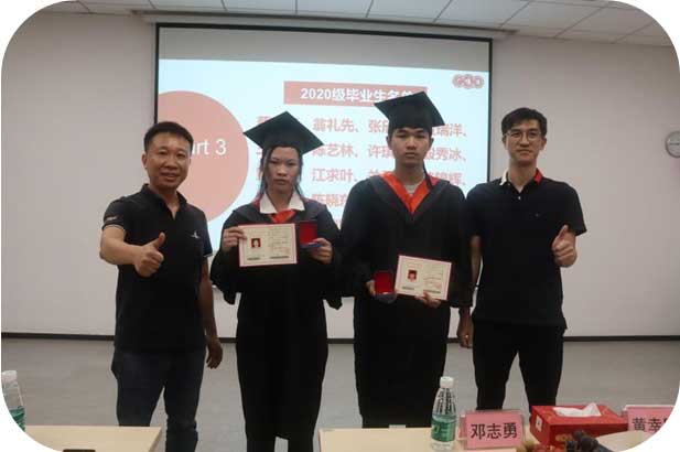 許總經(jīng)理、鄧主任為2020級畢業(yè)生代表頒發(fā)畢業(yè)證書及勛章