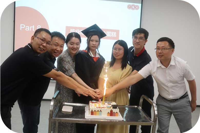 許總經(jīng)理、學(xué)校領(lǐng)導(dǎo)與畢業(yè)生代表一起切畢業(yè)蛋糕