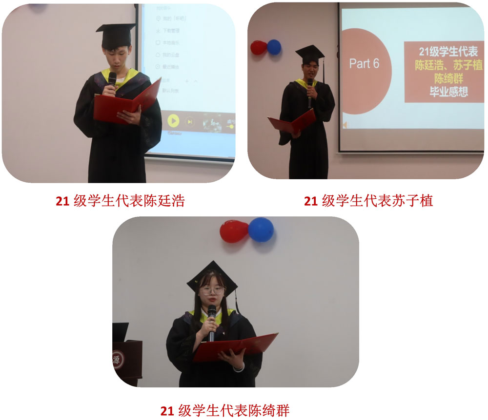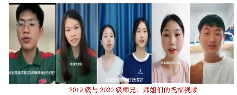 19級(jí)和20級(jí)的師兄、師姐們因工作未能到現(xiàn)場(chǎng)親自送上祝福,但他們給21級(jí)的畢業(yè)生錄了祝福視頻,每一個(gè)鏡頭都讓人感動(dòng)!他們祝愿21級(jí)的畢業(yè)生們?cè)诠ぷ髦绣憻捵约焊鞣矫娴哪芰?,追逐快?lè)生活,成為更好的自己。
