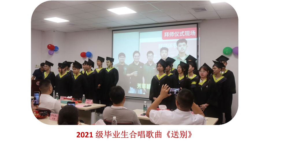 21級(jí)全體畢業(yè)生用精心策劃的畢業(yè)歌曲《送別》,唱響了畢業(yè)的主旋律,耳熟能詳?shù)母枨l(fā)全場(chǎng)的跟唱,美妙的歌聲和真情的演繹勾起了大家對(duì)父母的思念之情、對(duì)同窗朋友的難忘之情、對(duì)學(xué)校老師的感恩之情。歌曲伴隨著一段實(shí)習(xí)記錄視頻的播放,回顧了同學(xué)們?cè)趶V味源實(shí)習(xí)一年里的點(diǎn)點(diǎn)滴滴:初次見面的地方、廣味源第一課、趣味運(yùn)動(dòng)會(huì)上的狂歡、電腦課上認(rèn)真學(xué)習(xí)的模樣、一起上臺(tái)拿的獎(jiǎng)、中秋佳節(jié)歡樂(lè)相聚……如詩(shī)的歲月在廣味源沉淀、升華、綻放!每一個(gè)鏡頭都讓人留戀和感動(dòng)!