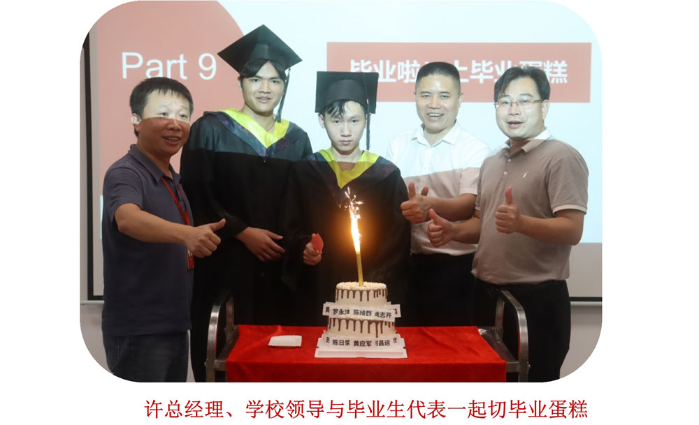 畢業(yè)歌聲響起,由2022級(jí)學(xué)生代表徐徐推出畢業(yè)蛋糕,許總、學(xué)校領(lǐng)導(dǎo)和學(xué)生代表一起為2021級(jí)切下畢業(yè)蛋糕,畢業(yè)典禮在歡迎的歌聲和同學(xué)們的歡呼聲中落下帷幕。
