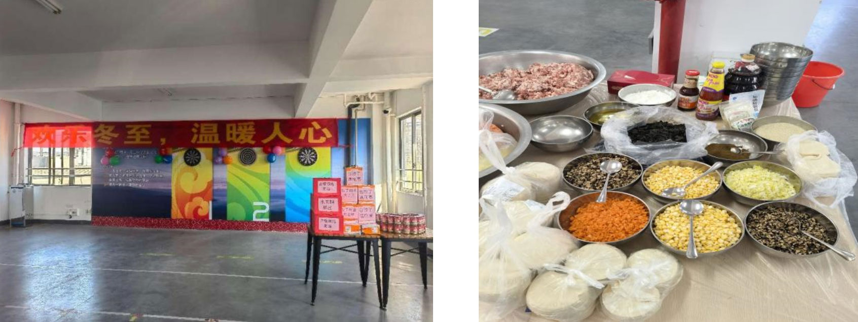 13:30,在各部門的鼎力配合下,員工文體中心活動現(xiàn)場布置完畢,行政部為冬至活動準備了豐富的食材,包括:新鮮餃子皮、精選肉餡和各式蔬菜,還有公司的調(diào)味品等等,讓每位參與活動的員工都能親手做出自己喜歡的味道。