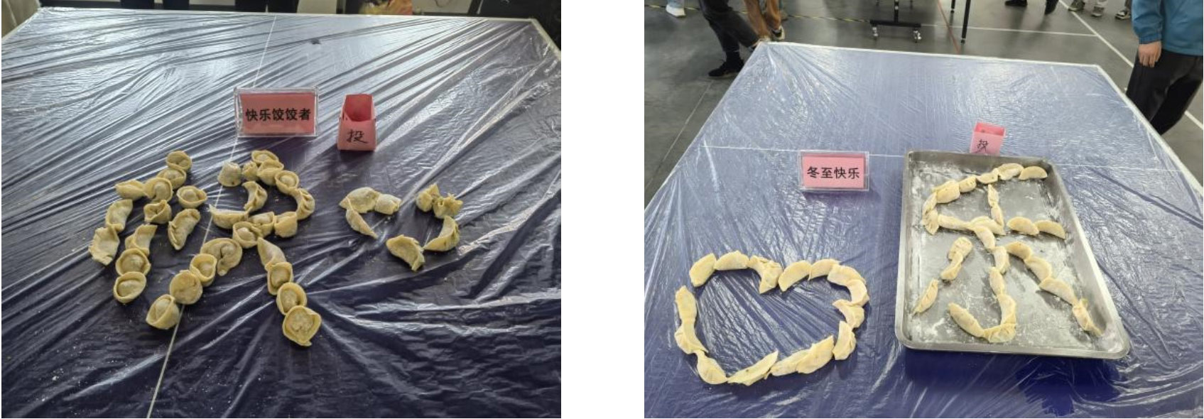 14:40,“包餃子速度”比賽率先開場,每組派2名代表參加包餃子比賽,要求煮好不能露餡。隊長們分好工后大家投入緊張的比賽,有的調(diào)餡,有的煮開水,有的準備物資,賽場上,有的手法嫻熟地包出一個個飽滿圓潤的餃子,有的像月牙餃,有的像元寶;有的則是初次嘗試,手法略顯生疏,包出的餃子形狀各異,但臉上洋溢著滿滿的成就感?!F(xiàn)場其樂融融,好一個幸福大家庭。